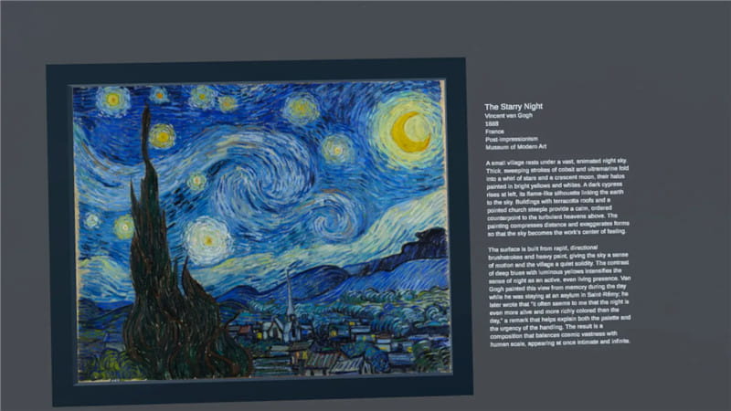 走进 VR 中的博物馆画廊!ArtQuest VR 让你探索来自成千上万位艺术家和数百个著名馆藏的绘画作品——包括卢浮宫、盖蒂博物馆、阿姆斯特丹国立博物馆、MoMA 等——并以真实比例呈现。按艺术家、流派或馆藏浏览;自然地从一件作品移动到另一件作品;然后靠近观察笔触和材料的高分辨率细节。ArtQuest VR 注重探索与细致观察,将重要艺术作品汇聚在一个沉浸式空间中。